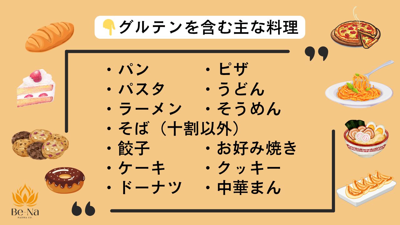 このグルテンは、小麦製品であるパンやパスタ、ピザ、うどん、ラーメン、そうめん、
